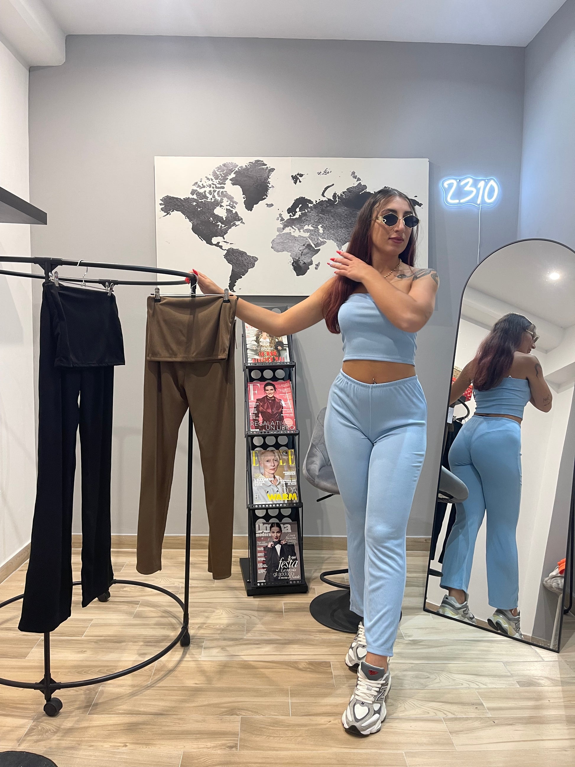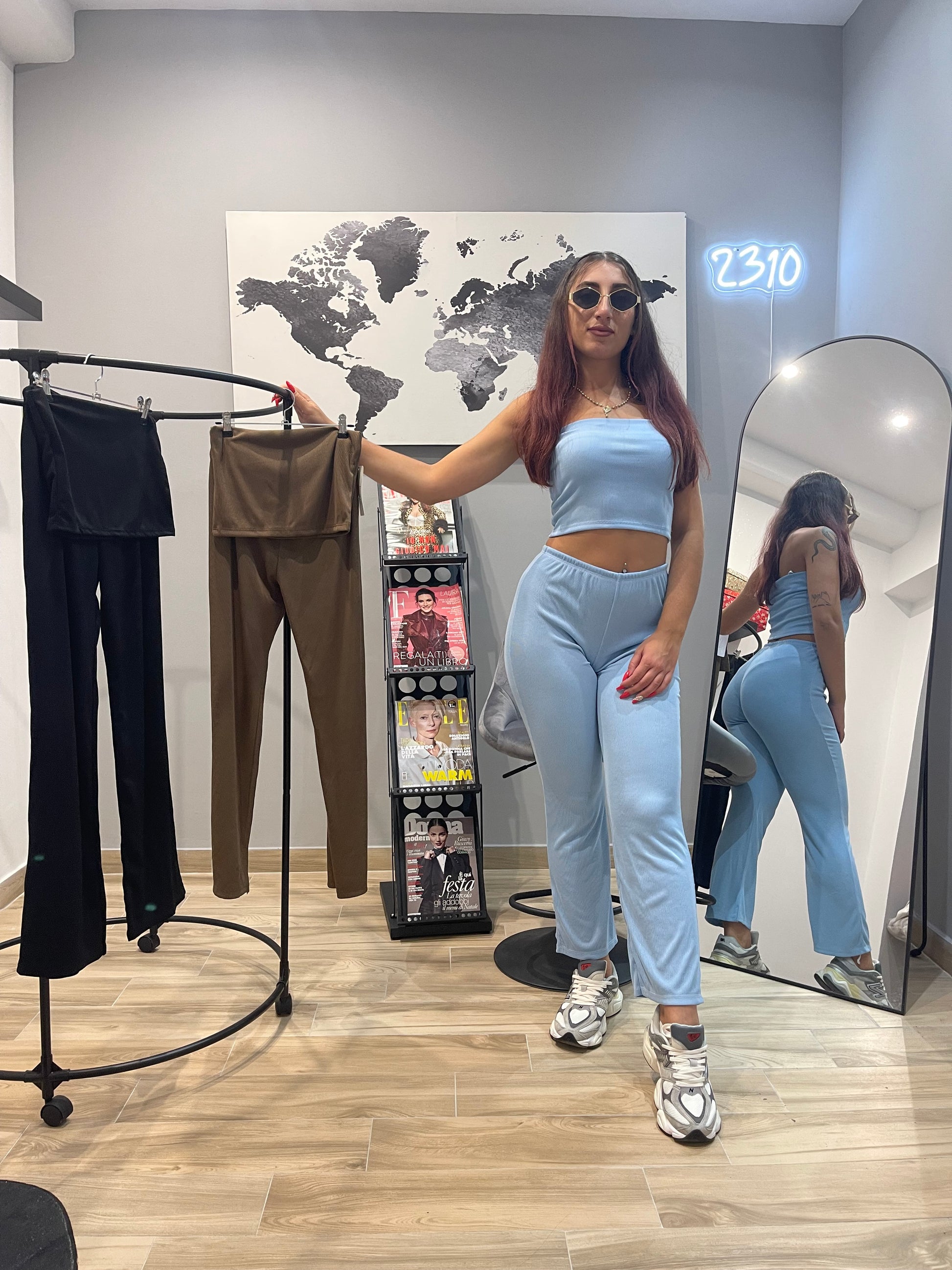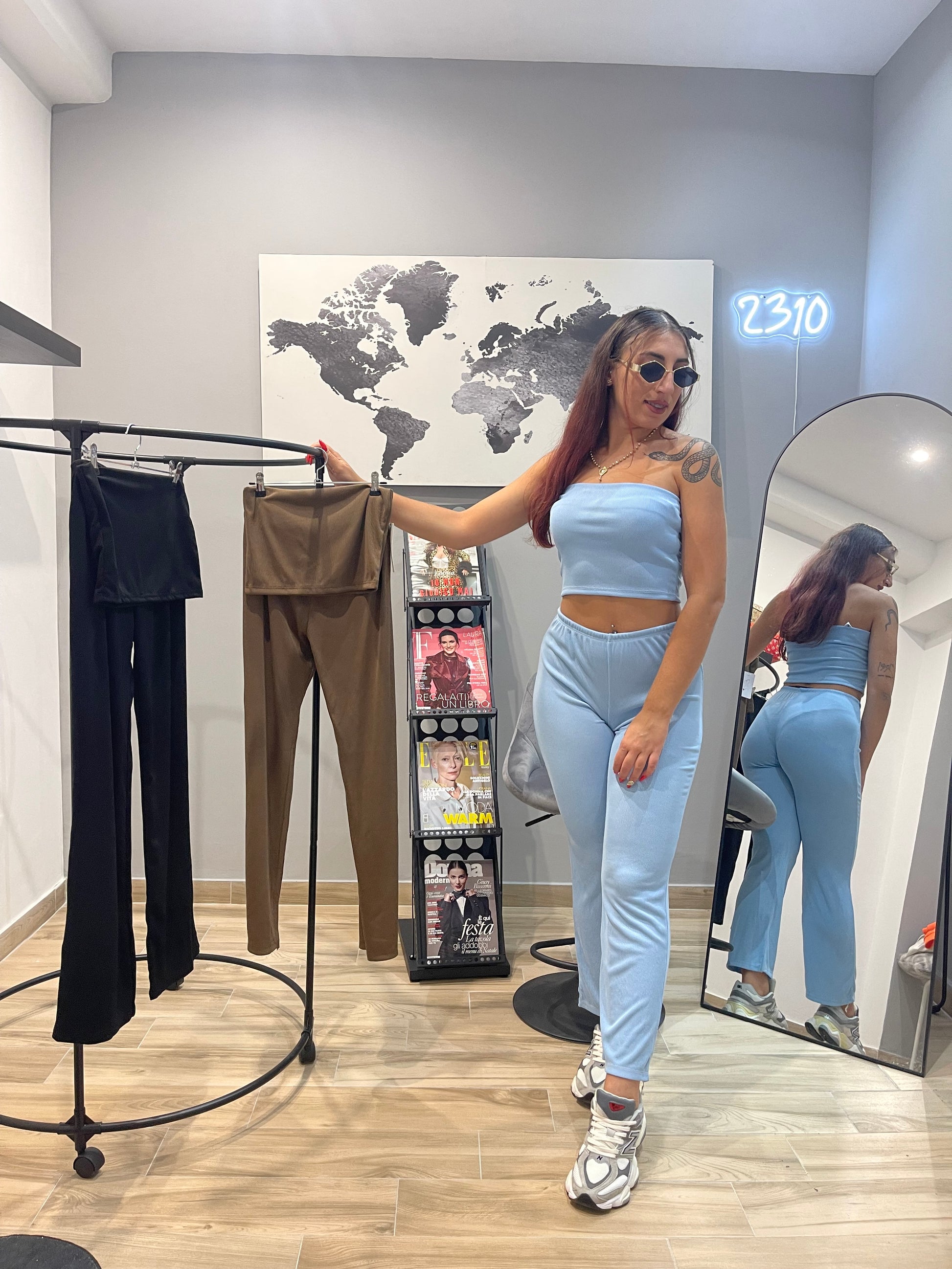 Cordinato top a fascia e pantalone elasticizzati. TAGLIA UNICA