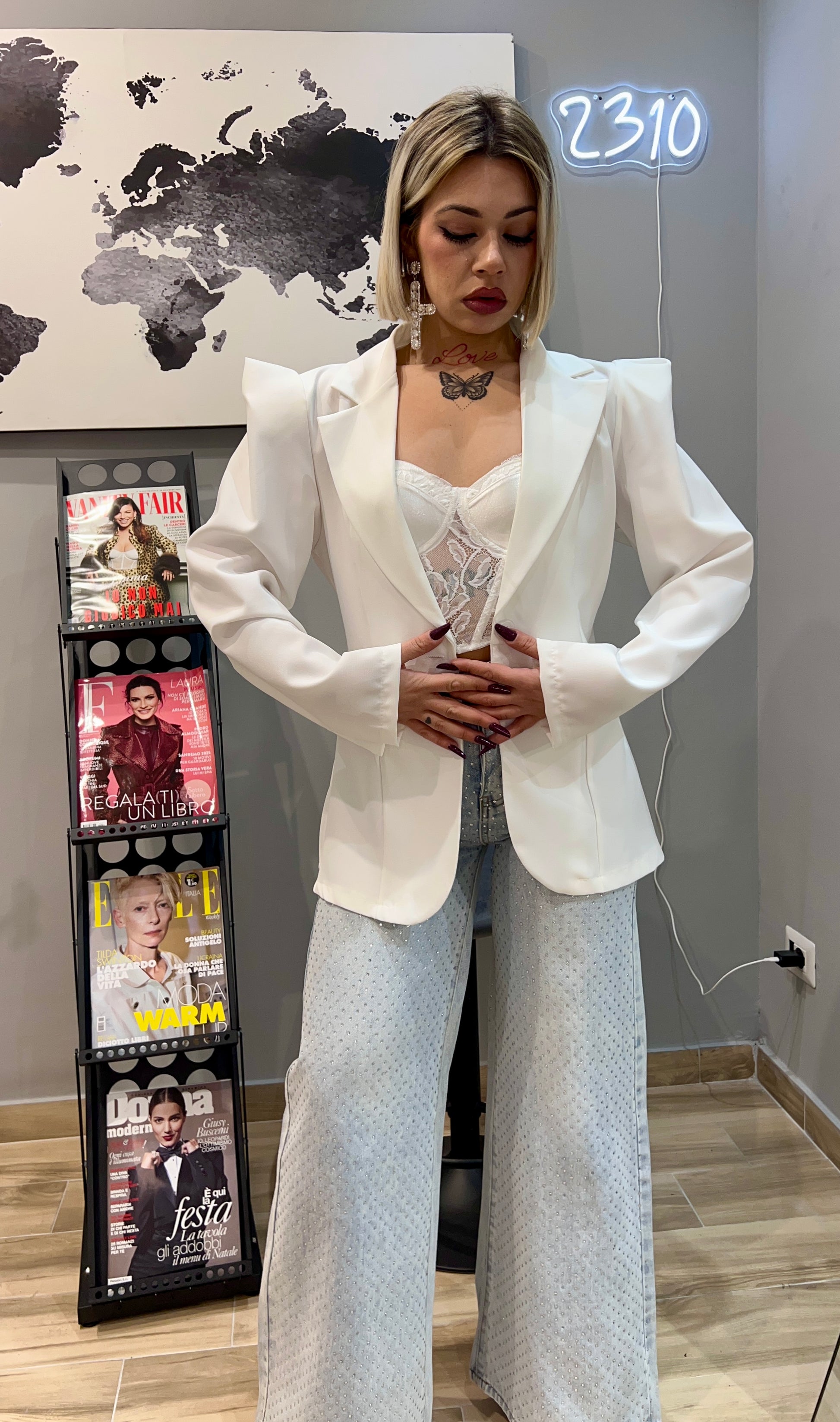 Spalline imbottite . Presenta un bottone al centro. Non Foderata.