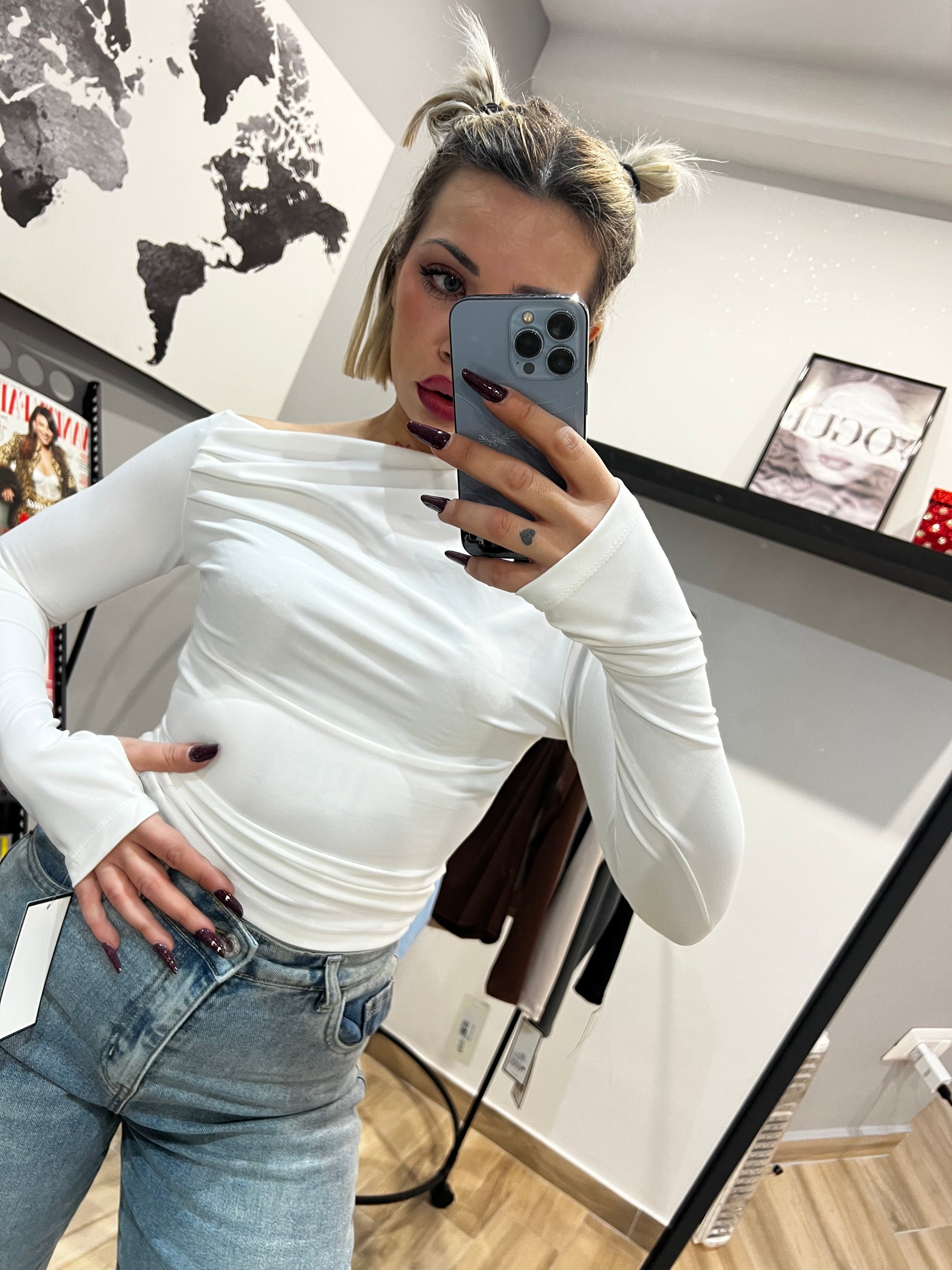 Maglia elasticizzata con maniche a guanto. TAGLIA UNICA