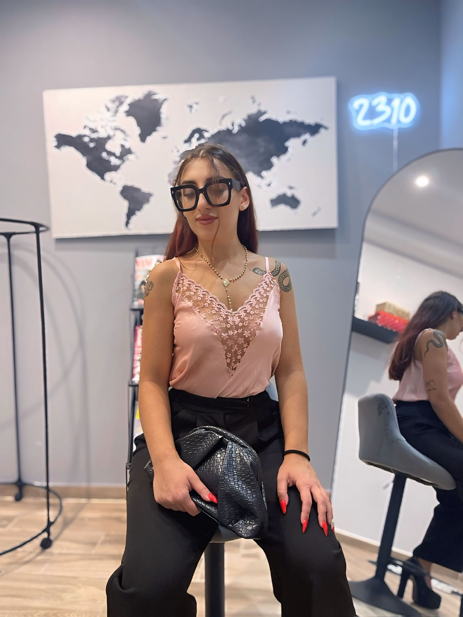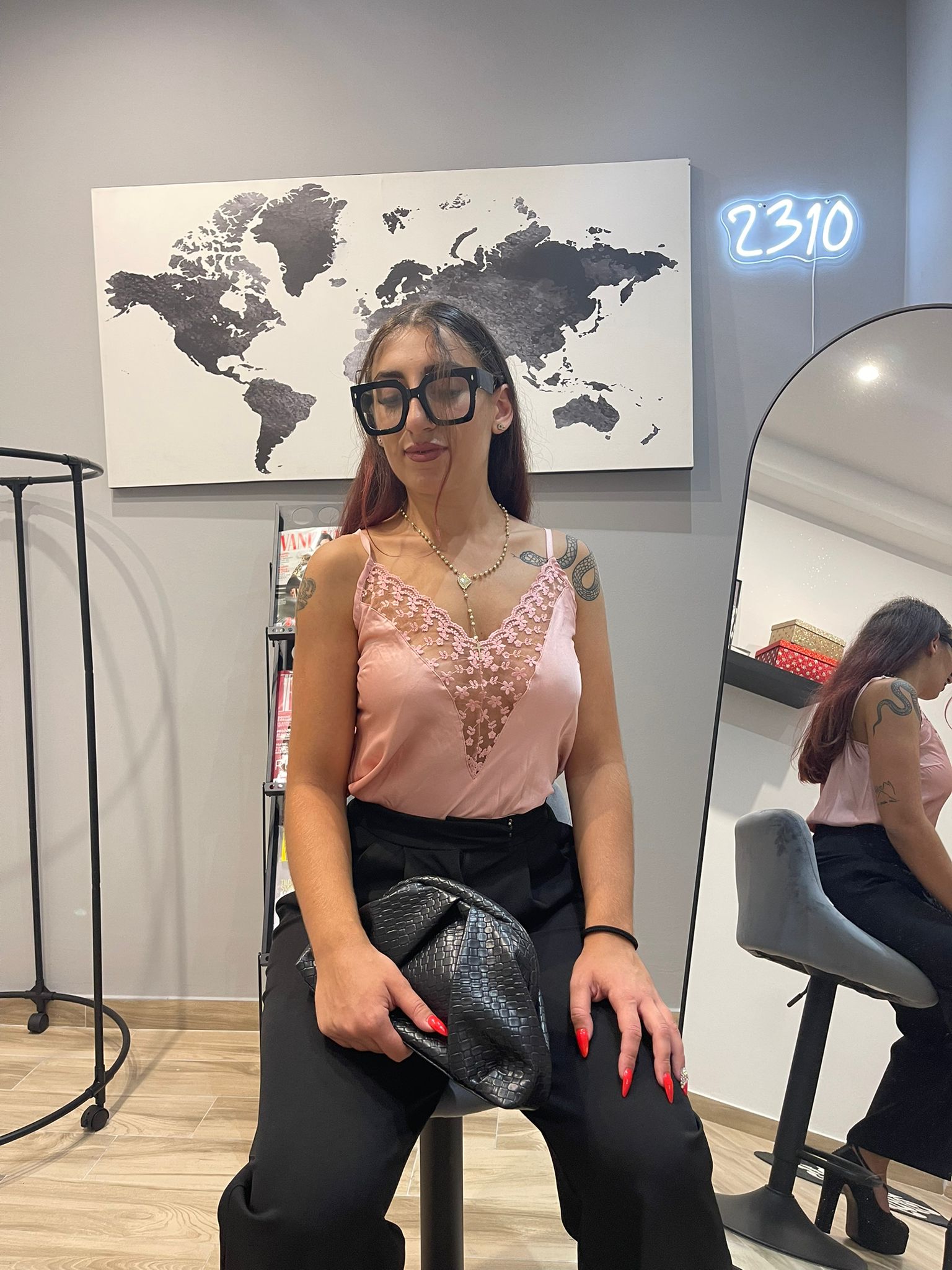 Top/ Sottogiacca in raso con dettaglio centale in pizzo.